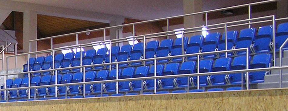 These are the issues you need to consider in your choice of grandstand seating, and our objective is to deliver solid engineering with a cost effective solution within your budget. Our design team will work with you to achieve these objectives and ensure that your grandstand is served by sufficient stairs, vomitories, transverse aisles, ramps and accomodation for disabled people. The systems give you the choice of bench, bucket seats, tip-up seats or VIP seats.