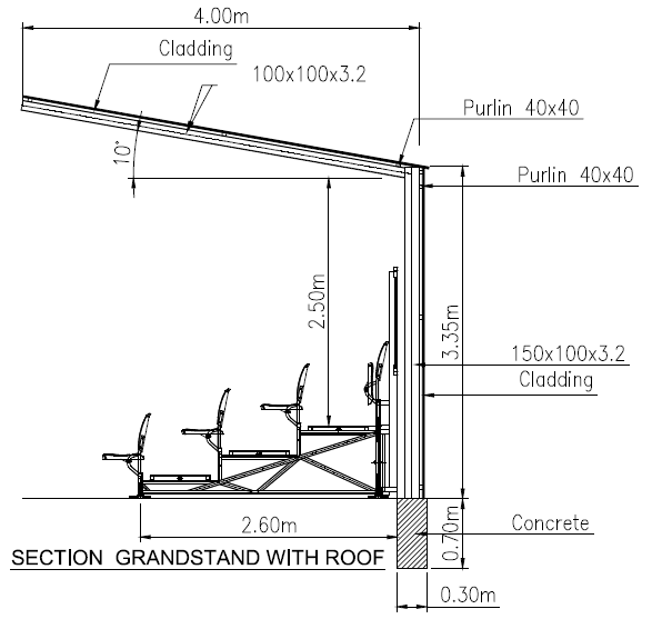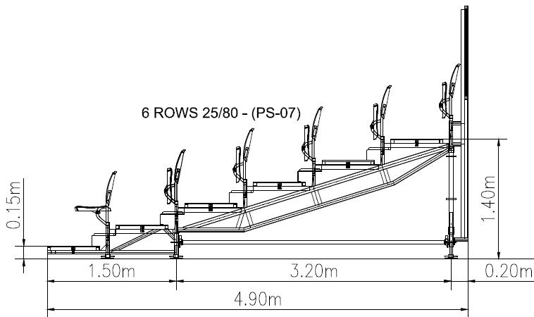 These examples demonstrate just a small number of accomplished deliveries. Our depot is in Somerset where we maintain manufacturing facilities whilst the bulk of fabrication is provided by www.pakar-seating.com (see their wide & diversified range), all structures complying to International standards. Examples for guidance:-